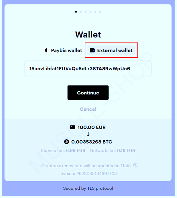 - Wallet (select an External wallet and enter the wallet address:)